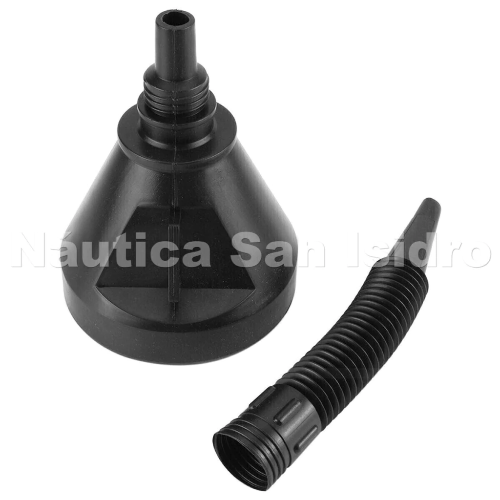 Embudo plástico con pico flexible. Diseñado con un filtro incorporado, este embudo garantiza que los contaminantes se mantengan fuera, proporcionándote combustible puro y de alta calidad en cada uso.